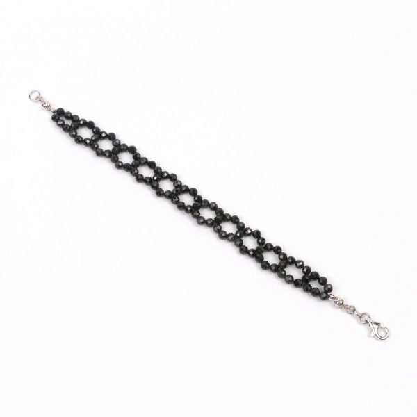 Bratara este realizata din incuietoare de argint 925 placata cu rodiu si piatra naturala spinel negru fatetat de 3 mm, avand dimensiunea de 18,5cm . Bratara se livreaza intr-o cutie de bijuterii cadou.