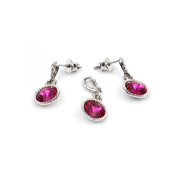 Set din argint 925 placat cu rodiu si cristale Swarovski rivoli fuchsia