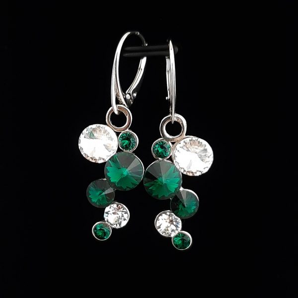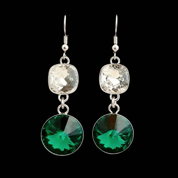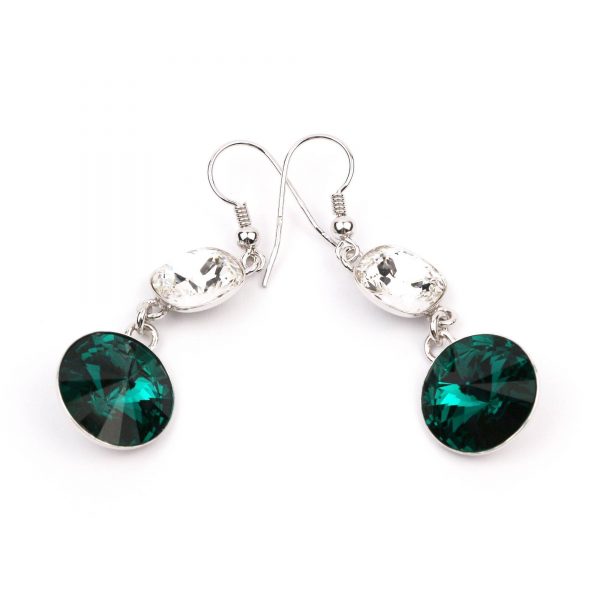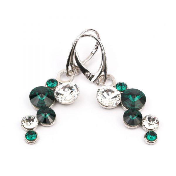 Cercei din argint 925 placat cu rodiu si cristale Swarovski rivoli crystal si verde smarald