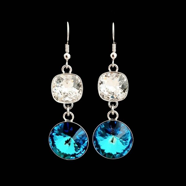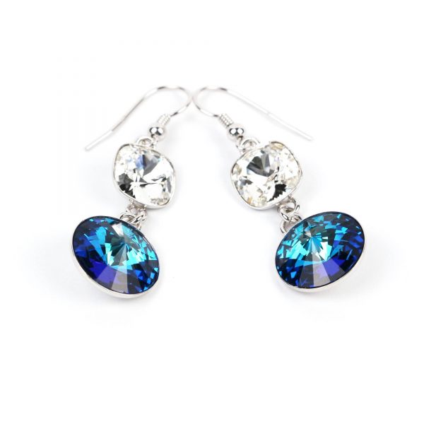 Cercei din argint 925 placat cu rodiu si cristale Swarovski crystal si bermuda blue