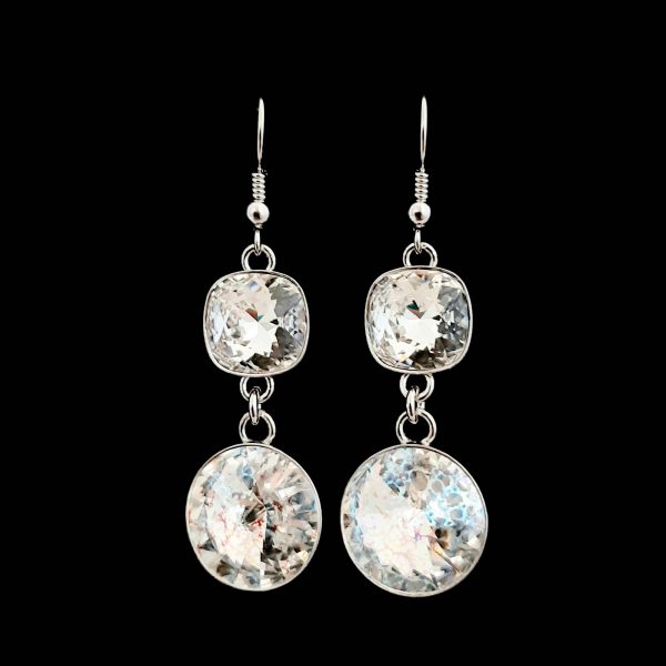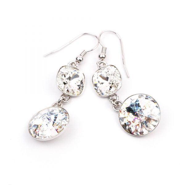 Cercei din argint 925 placat cu rodiu si cristale Swarovski rivoli crystal si silver night