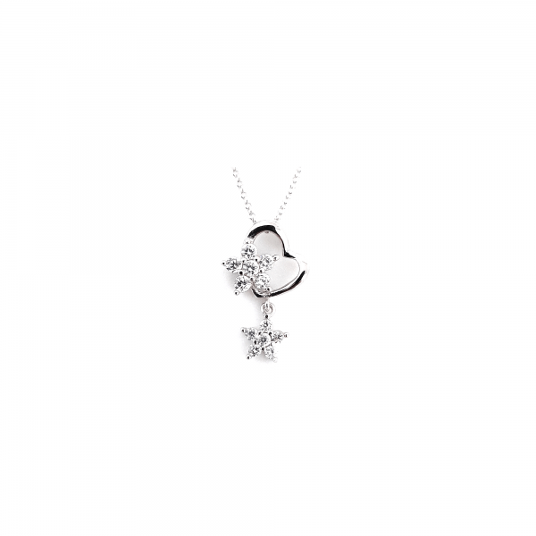 Pandant de argint cu flori din zirconiu si lantisor din argint 925 placat cu rodiu