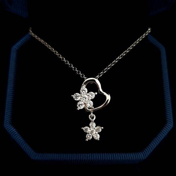 Pandant cu flori si lantisor din argint 925 placat cu rodiu