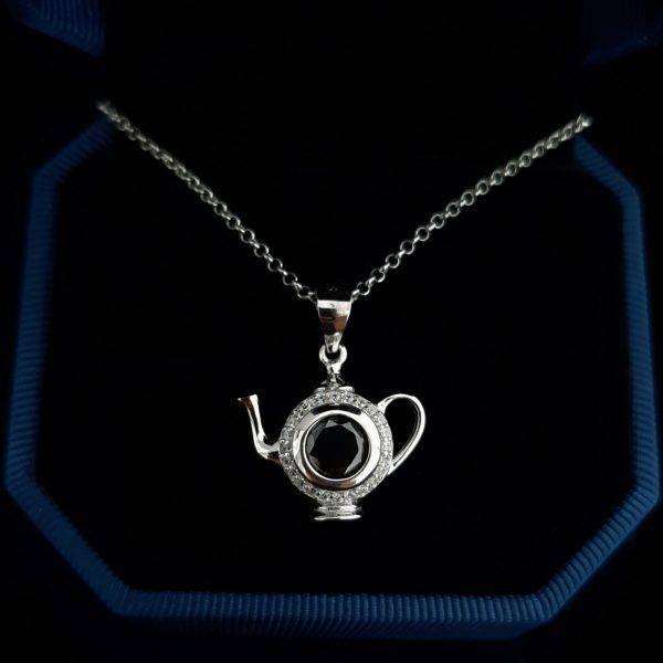 Pandantul este din argint 925 rodiat cu mici zirconii crystal are dimensiunea 3,5 x 1,6 cm. Lantisorul este din argint 925 rodiat, grosime 1mm si lungimea de 45 cm. Pandantul se livreaza intr-o cutie de bijuterii cadou.