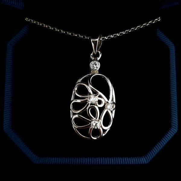 Pandant cu flori si lantisor din argint 925 placat cu rodiu
