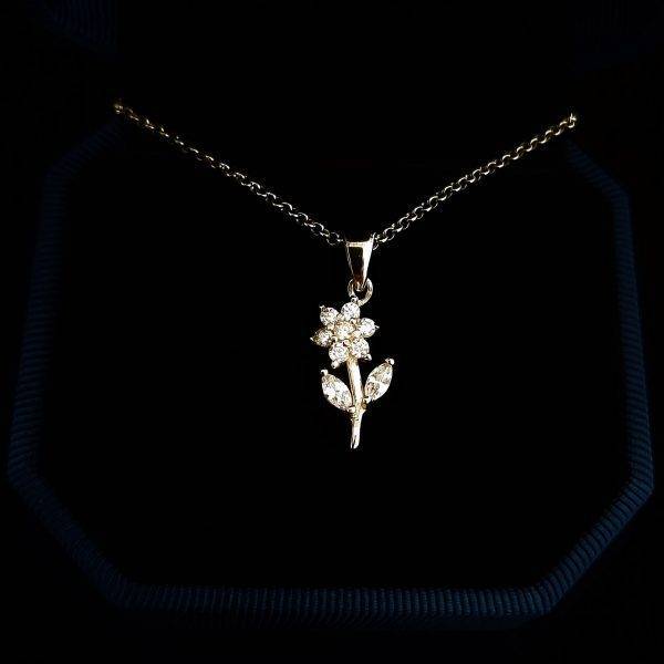 Pandant floare si lantisor din argint 925 placat cu rodiu