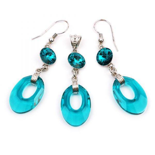 Pandantul este din argint 925 rodiat cu cristal Swarovski rivoli light turquoise de 8mm, are dimensiunea 2 x 1 cm. Lantisorul este din argint 925 rodiat, grosime 1.1 mm si lungimea de 40 cm. Pandantul se livreaza intr-o cutie de bijuterii cadou.