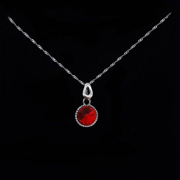 Pandant de argint cu cristal Swarovski, light siam si lantisor din argint 925 placat cu rodiu