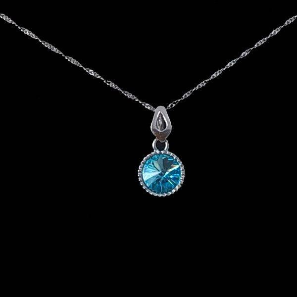 Pandant de argint cu cristal Swarovski, albastru aquamarin si lantisor din argint 925 placat cu rodiu