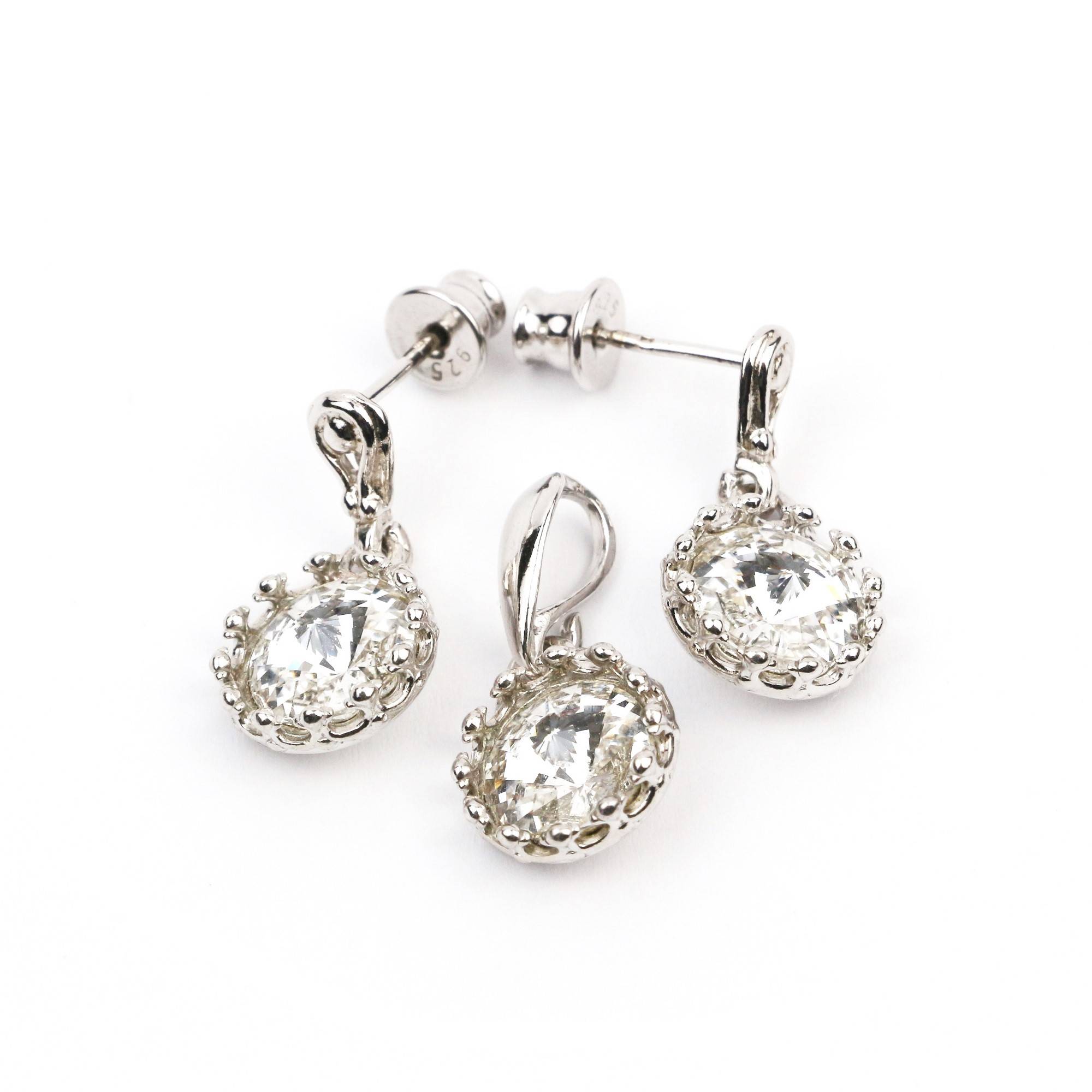 Set din argint 925 placat cu rodiu, cristale Swarovski light siam