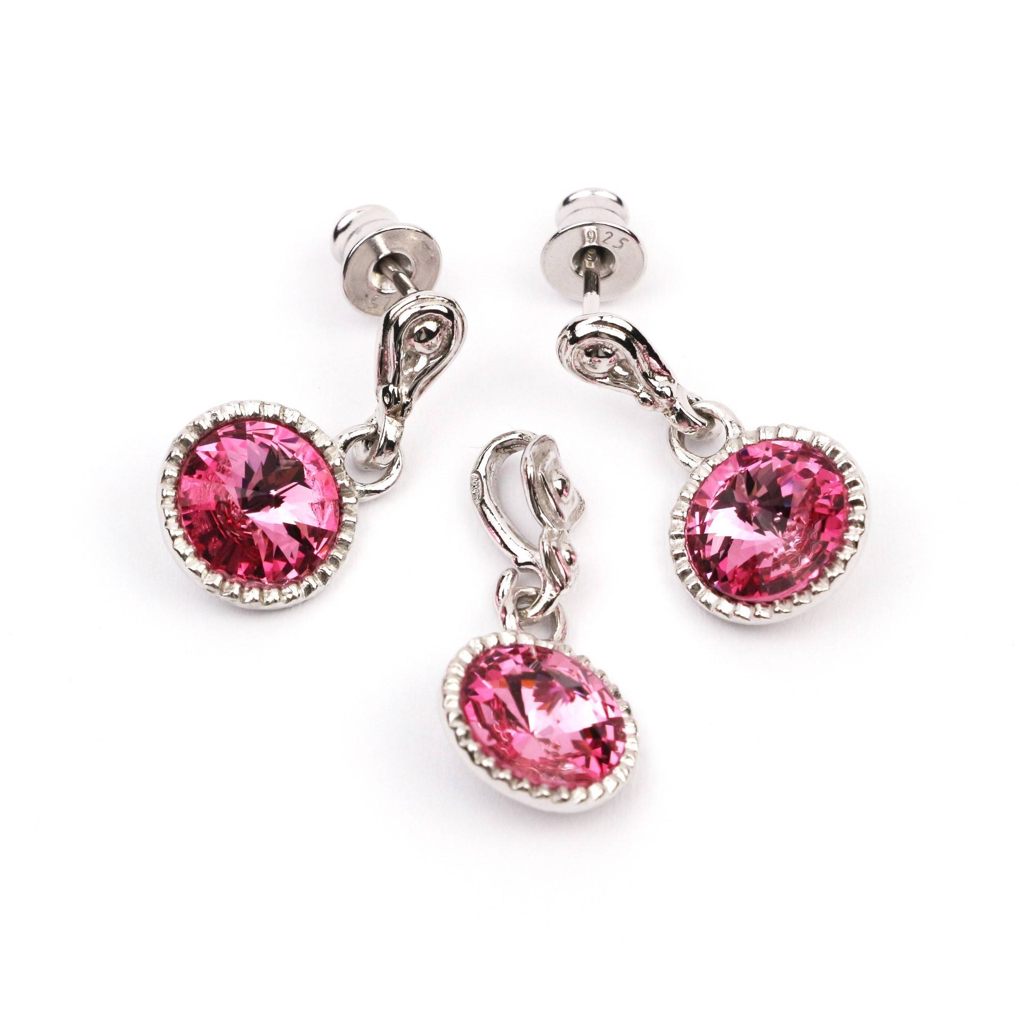 Set din argint 925 placat cu rodiu, cristale Swarovski helios astral pink