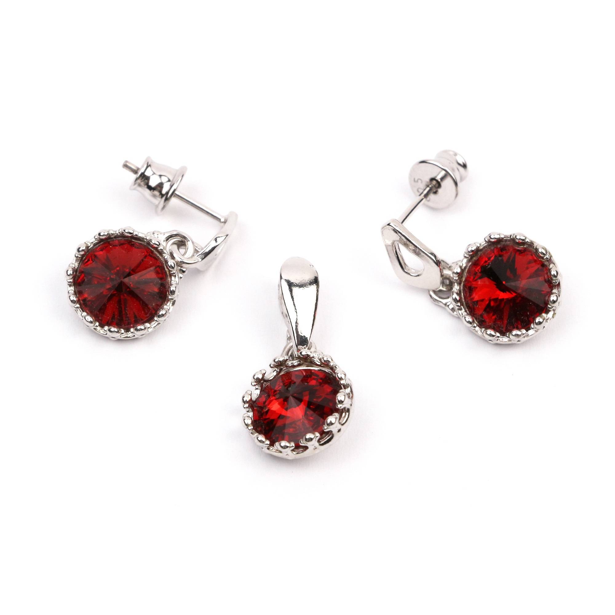 Set din argint 925 placat cu rodiu si cristale Swarovski rivoli scarlet