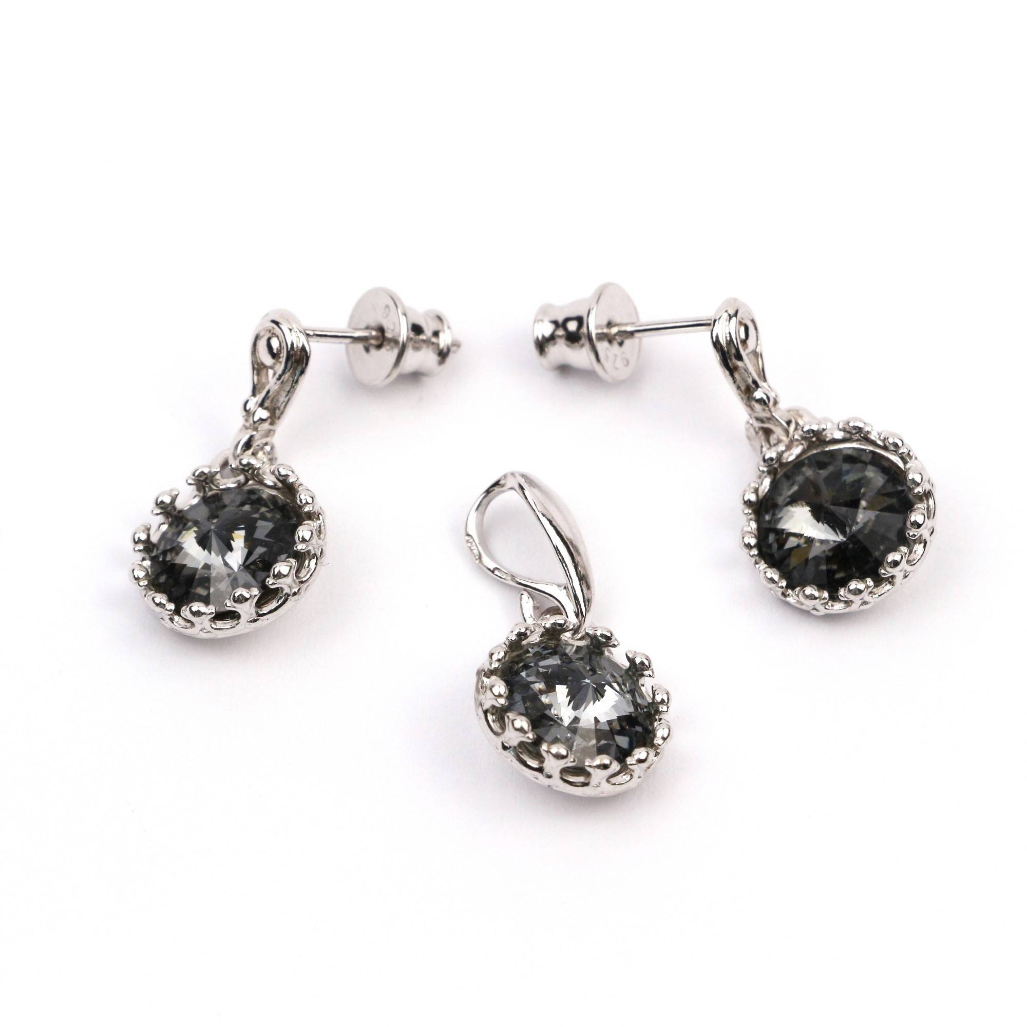 Set din argint 925 placat cu rodiu si cristale Swarovski rivoli silver night